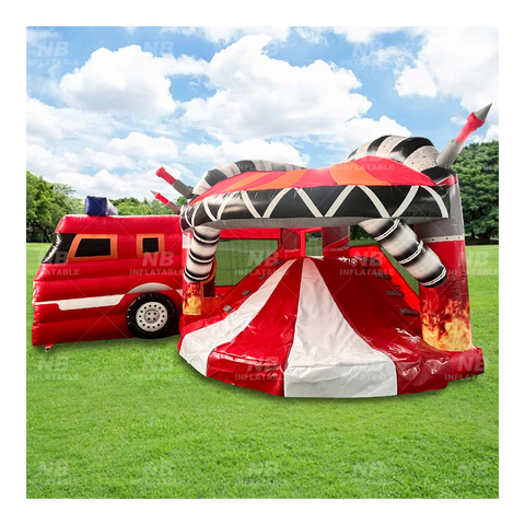 Commercial Inflatable Kids Fire Truck Bounce House Combo Inspired Bouncy Castle Fire House Fighter Inflatable
