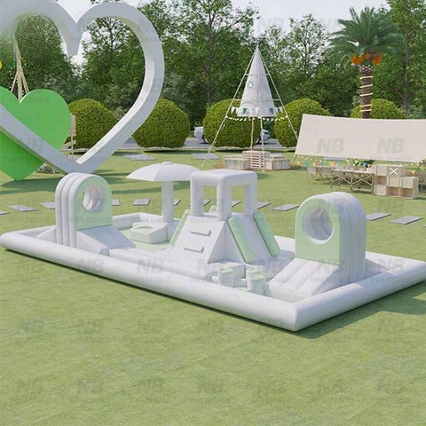 White Inflatable Kids Playground All White Bounce Castle With Water Pool Summer Inflatable Water Splash Pad